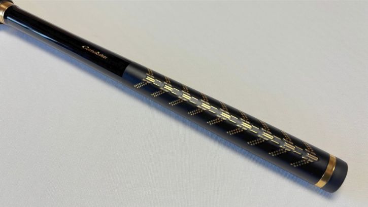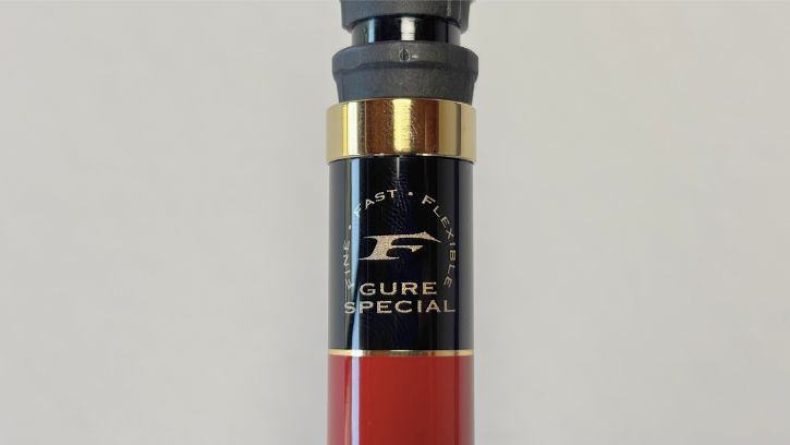 グレスペシャルFのデザインで最も印象的な「金色」。各部部の金属パーツは全て金色、元竿の竿名称部分の文字と柄も金色にし、非常に統一感のあるデザインとなっています。