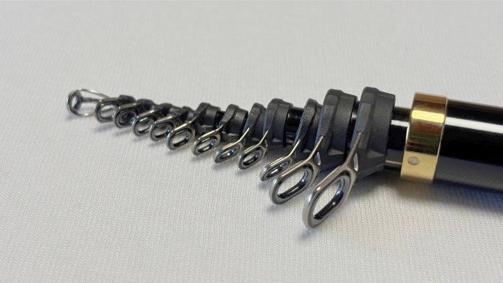 普通に考えれば「穂先と#2の継ぎ部分にウルトラASDを搭載している」と思うはず。しかし、私は穂先のソリッド部分とチューブラ部分との継目にウルトラASDを搭載しているのでは?と推測しています。